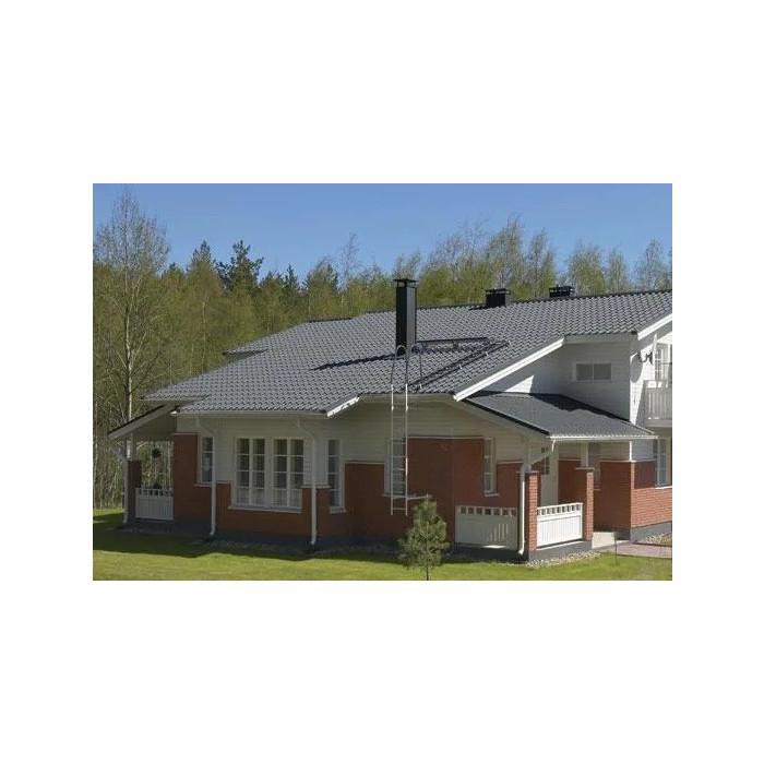 Металлочерепица Ruukki Elite Pur Matt изготавливается методом горячего оцинкования. За основу берутся стальные листы стандартной толщины 0,5 мм, которые в процессе специальной обработки приобретают дополнительную прочность и жесткость. Это делает их стойкими к воздействию большинства негативных факторов среды, включая осадки, солнечные лучи, ветровые нагрузки. Матовое полимерное покрытие создает красивый эффект на поверхности, визуально подчеркивает эстетику кровли. Толщина защитного слоя составляет 50 мкр, этого достаточно, чтобы защитить профили от царапин и механических повреждений. К неоспоримым преимуществам серии относится то, что металлочерепица Ruukki Elite Pur Matt имеет гарантированный производителем срок эксплуатации, достигающий 25 лет.