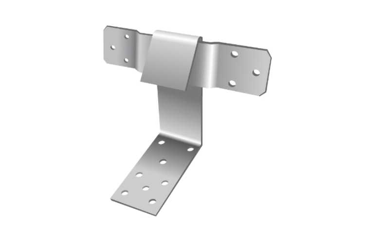 Скользящая опора открытого типа представляет собой два отдельных элемента. Первый - направляющая - изогнутая стальная пластина с перфорацией на концах. Крепится непосредственно к стропильной ноге. Второй элемент - неподвижный уголок.