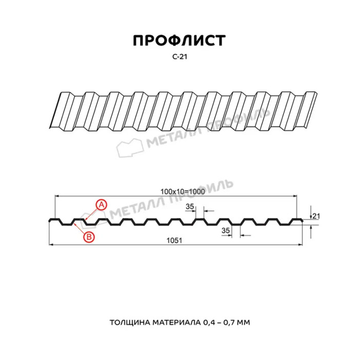 Профиль С-21 обладает прочностью и долговечностью, что делает его идеальным выбором для кровли и фасадов зданий.