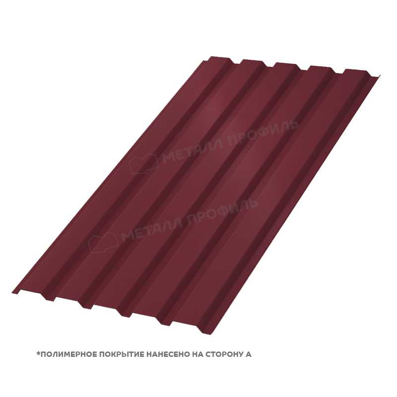 Профлист изготовлен из металла толщиной 0.45 мм, что обеспечивает ему прочность и долговечность. Он имеет покрытие RAL 3005 Красное вино, которое придает ему эстетичный и стильный вид.